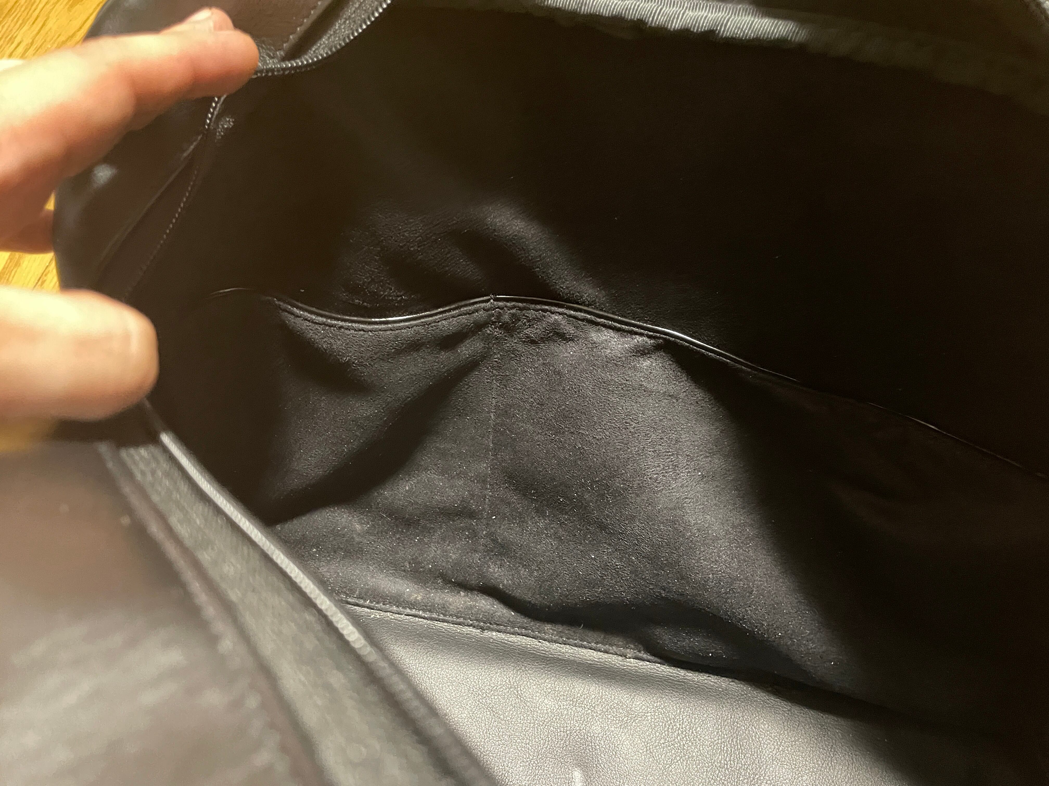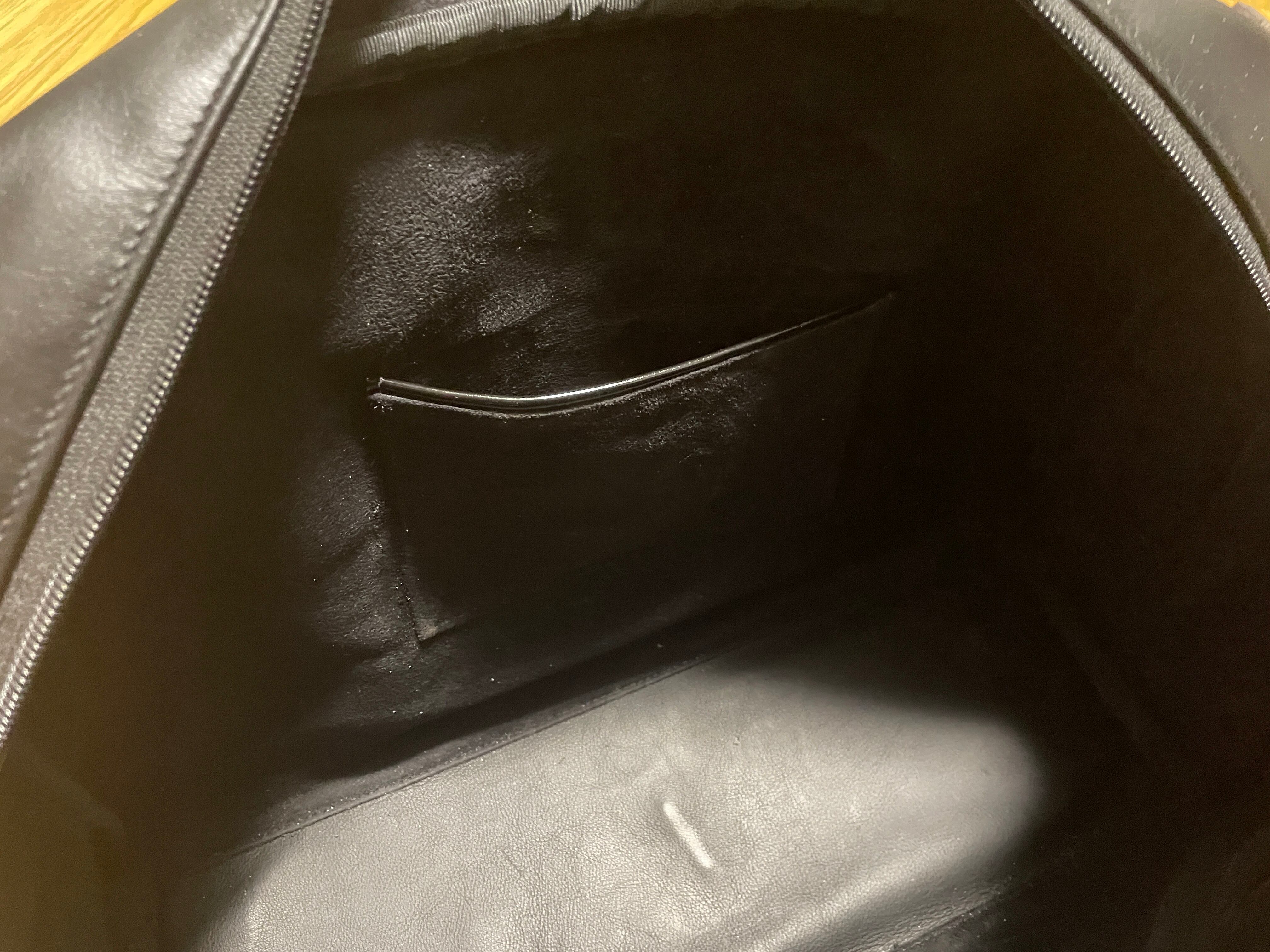 オーダーメイドで製作しますので、レザーとキャンバス生地を大きさ通りに裁断し縫い合わせていきます。内ポケットや内装生地をバッグ本体に取り付け、最後にレザー製ハンドルを縫い付けます。快適な握り心地のハンドルにご満足いただけると思います。